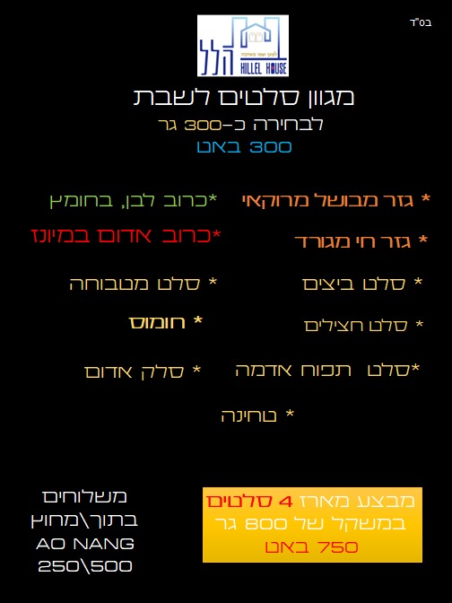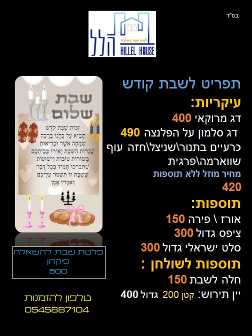 תפריט המנות הכשרות שלנו ומחירים. אנחנו עושים משלוחים 🙂