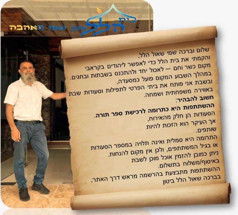 היא באירוח שבת מלאה כיד המלך, באווירה ביתית מיוחדת (ללא לינה),